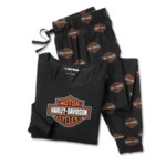 Mit unserem Limited-Issue Bar & Shield Long Sleeve Pajama Set kannst du im H-D Look schlafen gehen. Ober- und Unterteil sind aus strapazierfähigem, weichem Polyester-Jersey mit Elastananteil, der für Bewegungsfreiheit sorgt. Das Oberteil hat einen schmeichelhaften Rundhalsausschnitt, während das Unterteil mit einem Kordelzug in der Taille und Seitentaschen ausgestattet ist. Der Damenpyjama ist mit einem individuellen Allover-Muster auf der Hose und unserem Bar & Shield auf dem Oberteil versehen.