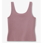Design-Details: Gekerbter V-Ausschnitt vorne. Tiefer Rundhalsausschnitt hinten. Einfassung an Halsausschnitt und Armöffnungen. Gerader Saum. Kürzere Länge.