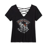Women's Bling H-D® Afterlife Short Sleeve Laced Back Tee - Harley Black L