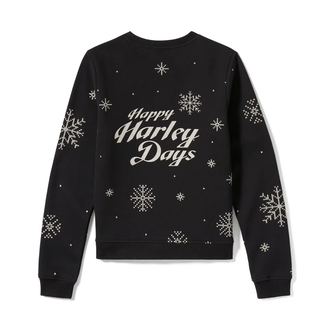 Entscheide dich diese Saison für festliche Motorrad-Stimmung mit unserem Happy Harley® Days Fleece. Dieser Damen-Rundhalspullover aus Baumwoll-/Polyesterfleece mit Rippstrickbesatz sorgt für langanhaltenden Tragekomfort und Formstabilität. Er ist mit individuellen Grafiken versehen, darunter auch ein Upgrade mit dem Schlitten des Weihnachtsmanns. Er wird garantiert ein Hit bei den Weihnachtsfeiern mit deiner Motorradfahrerfamilie – schnapp dir dein Exemplar, bevor es vergriffen ist.