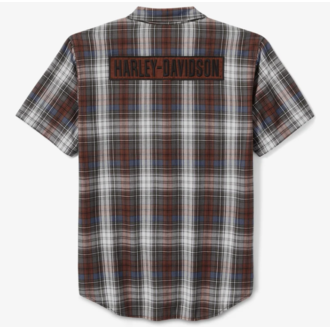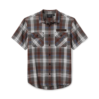 Mit unserem garngefärbten Blockschrift-Karohemd bleiben Sie Ihrem Motorrad-Stil treu und sehen dabei schick aus. Strapazierfähig und dennoch atmungsaktiv aus leichtem Baumwoll-Twill, der durch die Waschung für ein eingetragenes Tragegefühl sorgt. Dieses kurzärmelige Button-Down-Hemd für Herren besticht durch einen Hemdsaum, der sowohl in die Hose gesteckt als auch darüber getragen gut aussieht, ein praktisches Stiftfach auf der linken Brusttasche und einen verdeckten Kragen mit Druckknopfverschluss, der auch unter der Motorradkleidung nicht verrutscht. Die aufgestickten Patches auf Vorder- und Rückseite sorgen für einen nostalgischen, von Arbeitskleidung inspirierten Look.