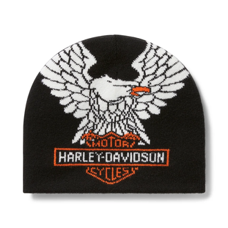 Mit unserer Eagle Strike Wendemütze bleiben Sie auf zwei Arten warm. Sie besteht aus Acryl mit einem Anteil Nylon und Elastan für zusätzlichen Stretch und lang anhaltenden Tragekomfort. Wählen Sie unsere gleichnamige Seite für einen schlichten Look oder verleihen Sie Ihrem Motorrad-Stil mit der markanten Adler-Option neuen Schwung. Der Adler hier ist von einem Milwaukee Iron T-Shirt aus dem Jahr 1982 aus unseren Archiven inspiriert.